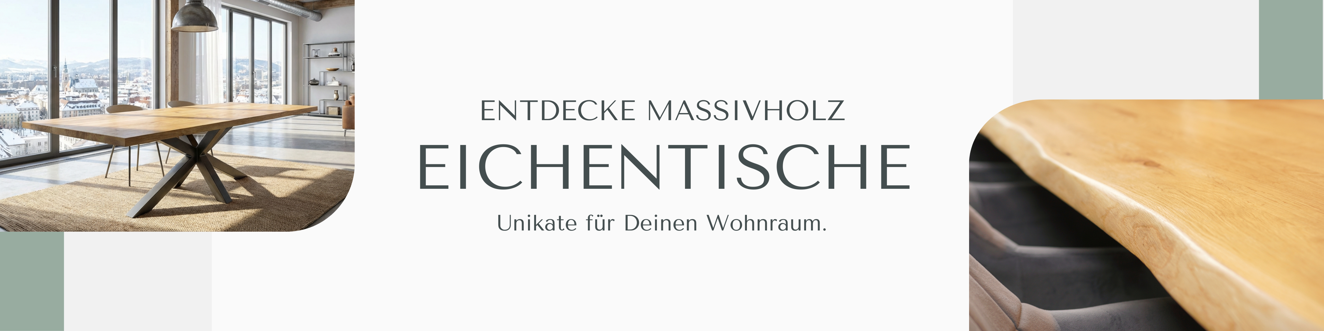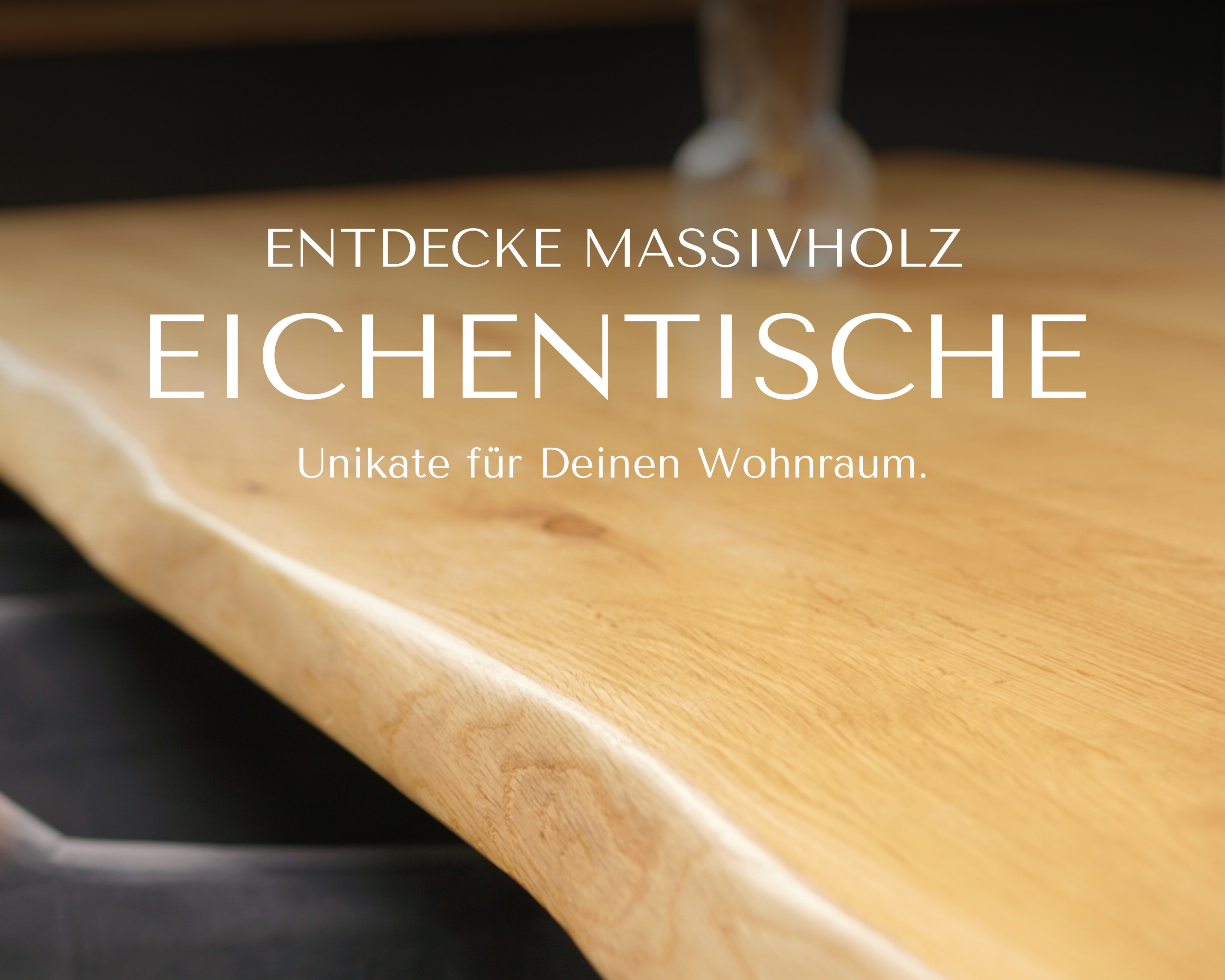 Entdecke die Welt der Massivholzmöbel bei holz4home® und finde den perfekten Esstisch für Dein Zuhause. Unsere Esszimmertische sind nicht nur funktional, sondern auch wahre Kunstwerke, die jedem Raum eine besondere Note verleihen. Mit einer Vielzahl an Designs, von klassisch bis modern, ist für jeden Geschmack etwas dabei. Die Tischplatte bildet das Herzstück eines jeden Esstisches. Bei holz4home® bieten wir eine breite Auswahl an Tischplatten, die aus sorgfältig ausgewähltem Massivholz gefertigt sind. Jede Tischplatte zeichnet sich durch ihre einzigartige Maserung und hohe Qualität aus. Ob rechteckig oder eine elegante runde Tischplatte, unsere Tischplatten sind robust und langlebig, ideal für den täglichen Gebrauch und besondere Anlässe. Ein solider Esstisch benötigt ein ebenso stabiles Tischgestell. Unsere Tischgestelle sind so konzipiert, dass sie nicht nur ästhetisch ansprechend, sondern auch extrem belastbar sind. Bei holz4home® findest Du eine Vielzahl an Tischgestellen, die perfekt mit unseren Tischplatten aus Eichenholz harmonieren. Ob aus Holz oder Metall, jedes Tischgestell bietet sicheren Halt und trägt zur Gesamtharmonie des Tisches bei. Neben unseren Esszimmertischen bieten wir auch eine erlesene Auswahl an Couchtischen. Diese kleineren Tische sind ideal für das Wohnzimmer und ergänzen Deine Einrichtung stilvoll. Auch hier kannst Du zwischen verschiedenen Tischplatten und Gestellen wählen, um den perfekten Couchtisch zu finden, der Deinem Raum eine warme und einladende Atmosphäre verleiht. Bei holz4home® ist jeder Esstisch ein Unikat. Unsere Massivholztische werden mit höchster Präzision und Liebe zum Detail gefertigt. Dank der vielfältigen Auswahl an Tischplatten und Tischgestellen kannst Du Deinen Esstisch individuell zusammenstellen und so einen einzigartigen Akzent in Deinem Esszimmer setzen.