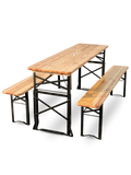 Unsere Bierzeltgarnituren bestehen aus robustem Holz, das für seine Langlebigkeit und natürliche Optik geschätzt wird. Das Set besteht aus einem stabilen Tisch und zwei passenden Bänken, die Platz für bis zu 4 Personen bieten. Diese Konstellation sorgt dafür, dass Ihre Gäste bequem sitzen und gesellige Runden genießen können.