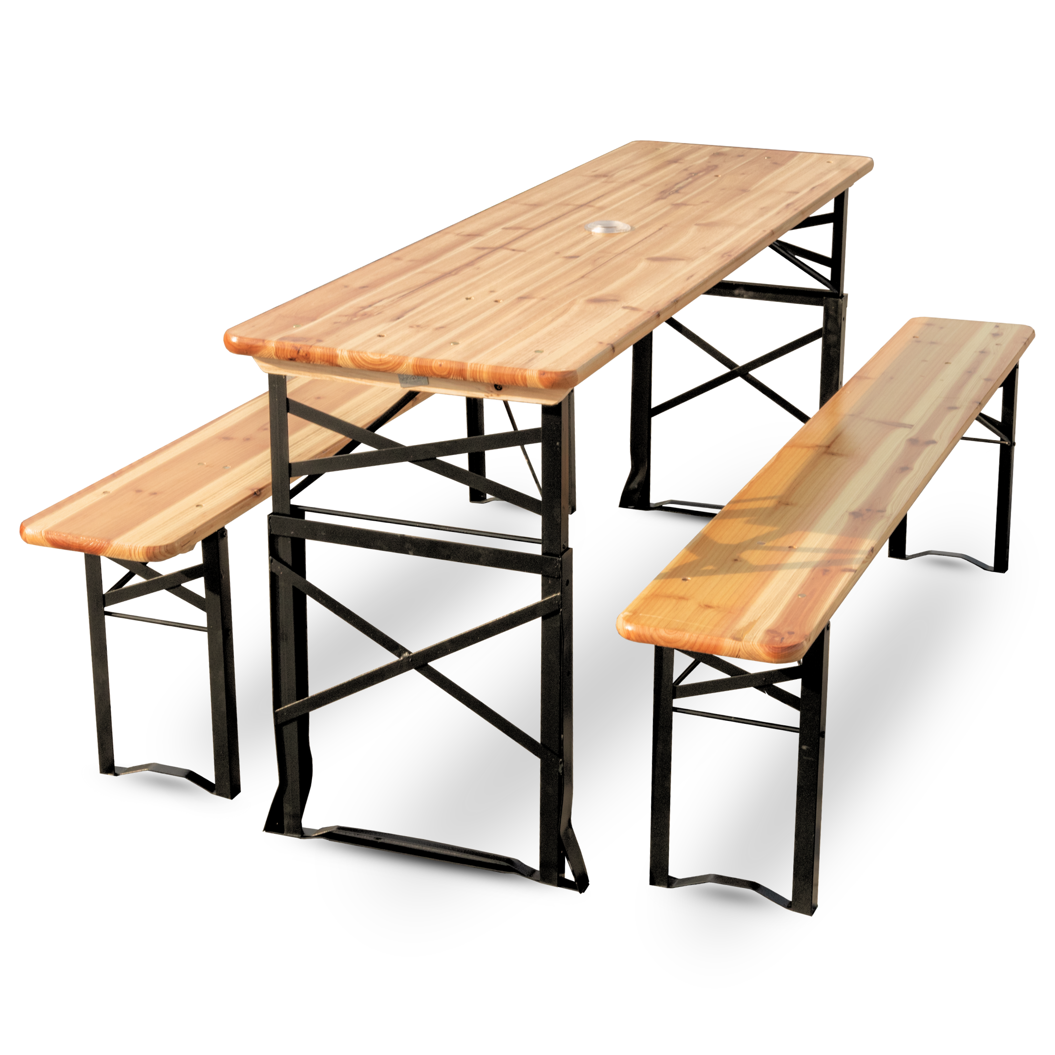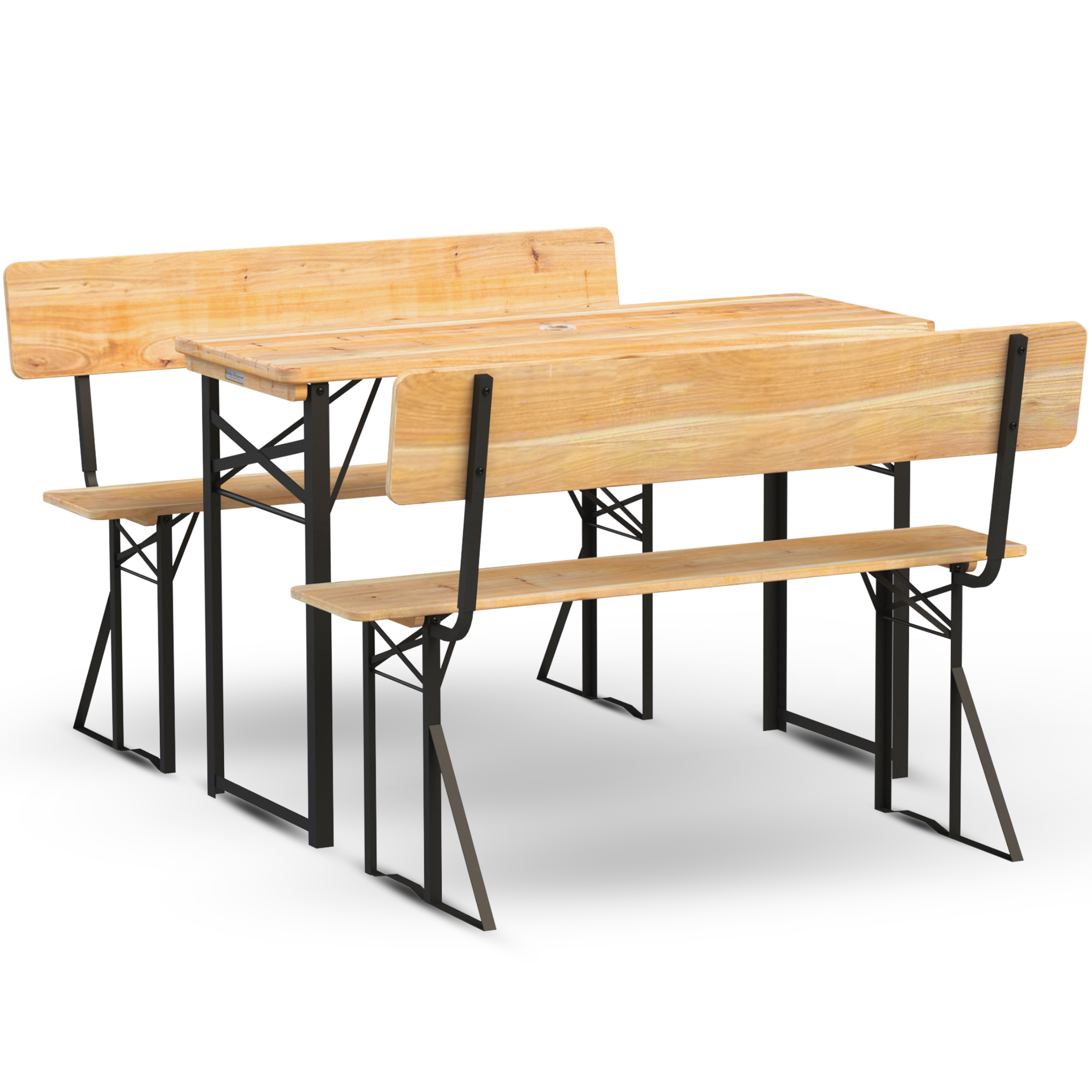 Unsere Bierzeltgarnituren bestehen aus robustem Holz, das für seine Langlebigkeit und natürliche Optik geschätzt wird. Das Set besteht aus einem stabilen Tisch und zwei passenden Bänken, die Platz für bis zu 4 Personen bieten. Diese Konstellation sorgt dafür, dass Ihre Gäste bequem sitzen und gesellige Runden genießen können.