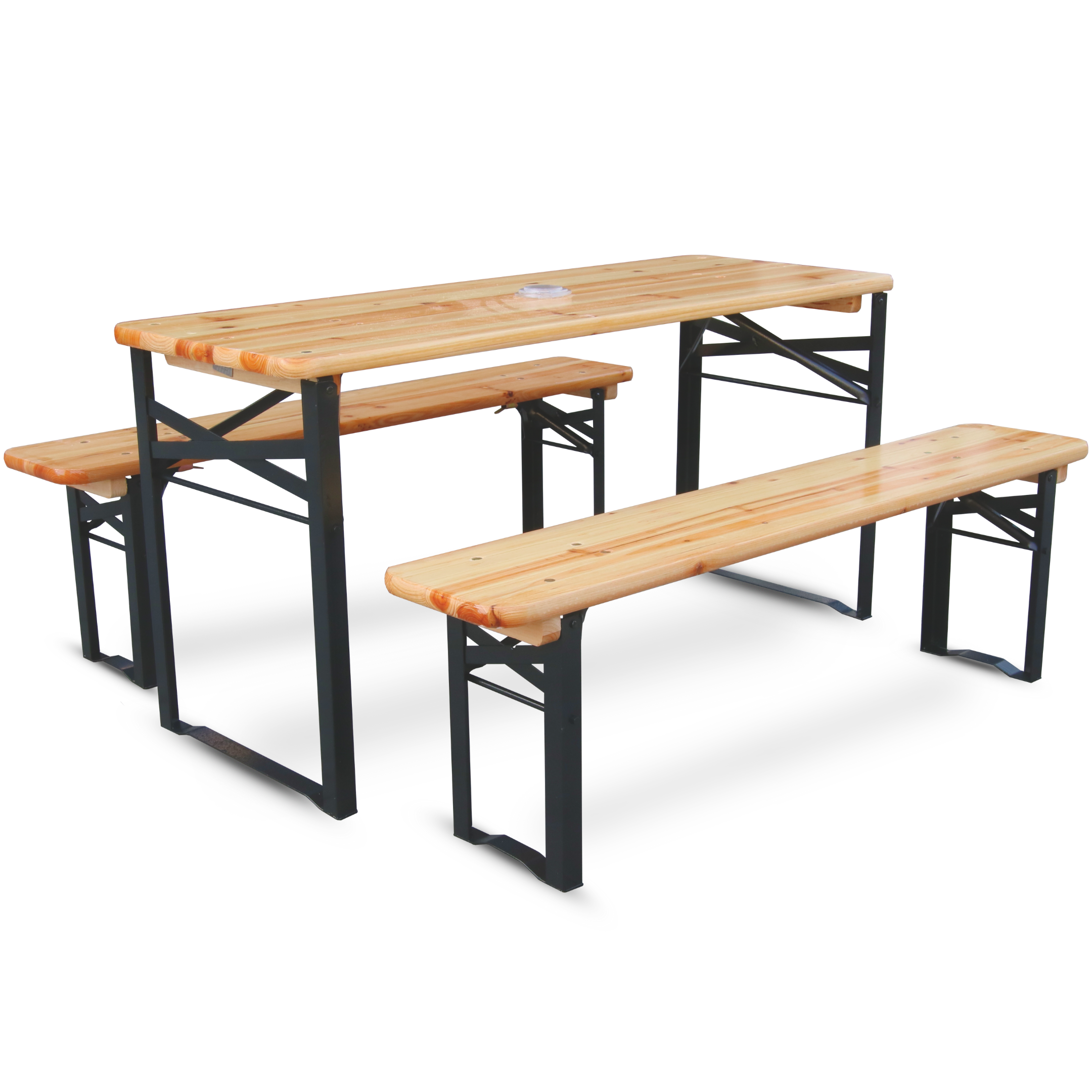 Eine klappbare Bierzeltgarnitur ist die ideale Wahl für alle, die Flexibilität und einfache Handhabung schätzen. Die Bänke und Tische lassen sich schnell und mühelos zusammenklappen und verstauen. Das macht sie besonders praktisch für spontane Feste und den Transport zu verschiedenen Veranstaltungsorten.