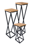 Ob als einzelnes Highlight oder im 3er-Set mit 50 cm, 70 cm und 90 cm Höhe – die Pflanzensäulen lassen sich vielseitig einsetzen. Sie bieten ausreichend Platz für Blumentöpfe, Vasen oder Dekoration und wirken sowohl einzeln als auch in Kombination als stilvolle Raumgestaltung. Das natürliche Zusammenspiel von Holz und Metall sorgt für eine warme, gleichzeitig moderne Ausstrahlung, die sich harmonisch in verschiedene Wohnstile einfügt.
