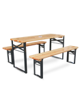 Unsere Bierzeltgarnituren bestehen aus robustem Holz, das für seine Langlebigkeit und natürliche Optik geschätzt wird. Das Set besteht aus einem stabilen Tisch und zwei passenden Bänken, die Platz für bis zu 4 Personen bieten. Diese Konstellation sorgt dafür, dass Ihre Gäste bequem sitzen und gesellige Runden genießen können.