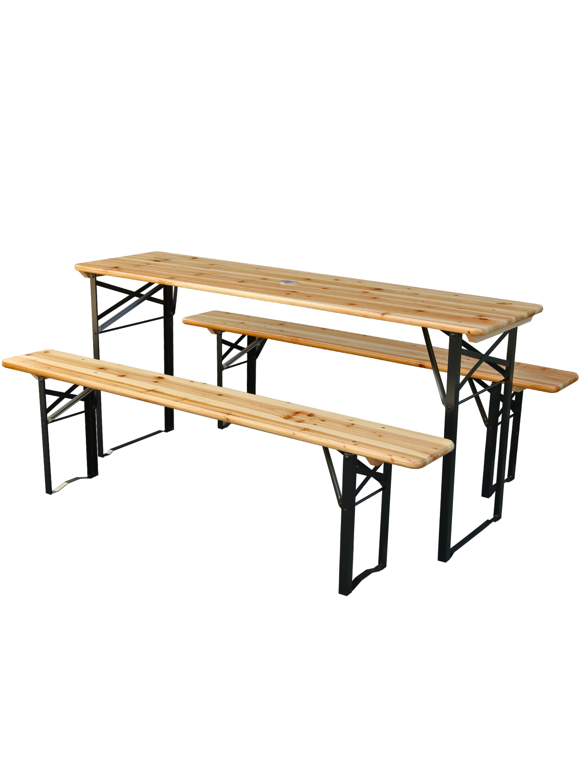 Eine klappbare Bierzeltgarnitur ist die ideale Wahl für alle, die Flexibilität und einfache Handhabung schätzen. Die Bänke und Tische lassen sich schnell und mühelos zusammenklappen und verstauen. Das macht sie besonders praktisch für spontane Feste und den Transport zu verschiedenen Veranstaltungsorten.